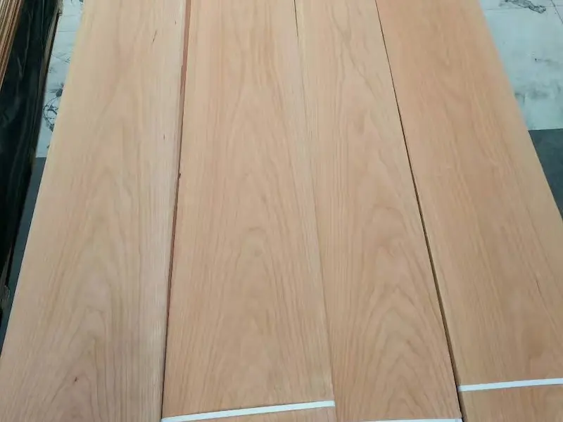 Cherry wood veneer sheets with smooth texture and light reddish-brown grain